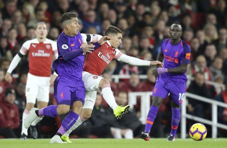 Μεγάλο ντέρμπι στο Λονδίνο, με πολλές τελικές, δυο δοκάρια, γκολ, αλλά χωρίς νικητή. Άρσεναλ και Λίβερπουλ αναδείχθηκαν ισόπαλες 1-1, οι Κόκκινοι συνέχισαν το αήττητο, αλλά, η Σίτι είναι πιθανό να τους αφήσει στη 2η θέση. Εκτός αποστολής ο Παπασταθόπουλος, ο οποίος δεν ξεπέρασε το πρόβλημα τραυματισμού. Πιο ορεξάτη η Άρσεναλ στο ματς, είχε τον έλεγχο, την κατοχή και στο πρώτο τέταρτο φάνηκε απειλητική για την αντίπαλό της. Ωστόσο, στο 4΄ την προβολή του Λακαζέτ έδιωξε ο Άλισον, ενώ στο 14′ ο Γκόμες με σωτήρια προβολή στο σουτ του Ομπαμεγιάνγκ έσωσε την ομάδα του. Όμως, ούτε στο 16′ φάνηκε τυχερή, αφού ο Μχιταριάν δεν εκμεταλλεύθηκε τη γκάφα του Άλισον στέλνοντας τη μπάλα άουτ. Η Λίβερπουλ στην πρώτη της φάση πανηγύρισε για λίγα δεύτερα. Φιρμίνο και Μανέ βγήκαν στη μπάλα, ο Βραζιλιάνος έκανε το πλασέ στο δοκάρι, ο Σενεγαλέζος την έσπρωξε στα δίχτυα, αλλά το γκολ ακυρώθηκε – μάλλον λανθασμένα – ως οφσάιντ. Οι Κόκκινοι έγιναν πιο επικίνδυνοι και στο 23′ βρέθηκαν μια ανάσα από το γκολ. Ο Φαν Ντάικ κατέβασε υπέροχα, έκανε καλό πλασέ, αλλά καλύτερη ήταν η επέμβαση του Λένο. Εξαιρετικό το ματς στο πρώτο ημίωρο, τα είχε όλα, δύναμη, πάθος, κάρτες, δέκα τελικές, εκτός από γκολ. Η Άρσεναλ απείλησε στο 39′, ο Οζίλ με τακουνιά έβγαλε τον Λακαζέτ σε θέση βολής, αλλά το σουτ πέρασε μόλις άουτ. Οι Κόκκινοι απάντησαν στο 45′ με δοκάρι, ο Λένο έκανε τραγική έξοδο, αλλά ο Φαν Ντάικ στάθηκε άτυχος.