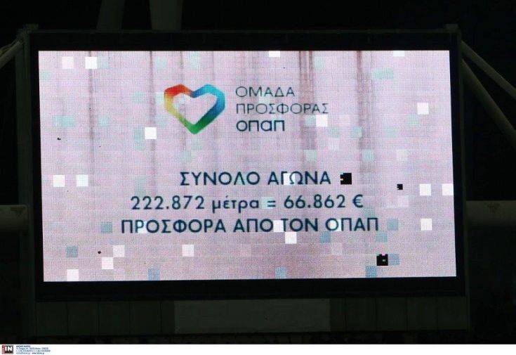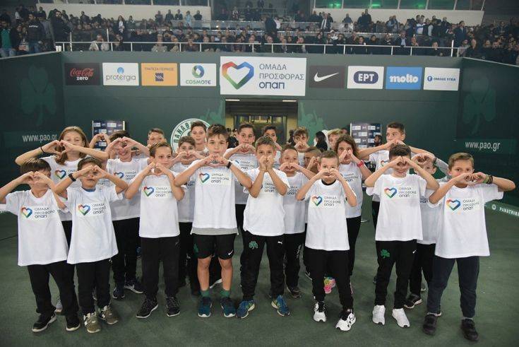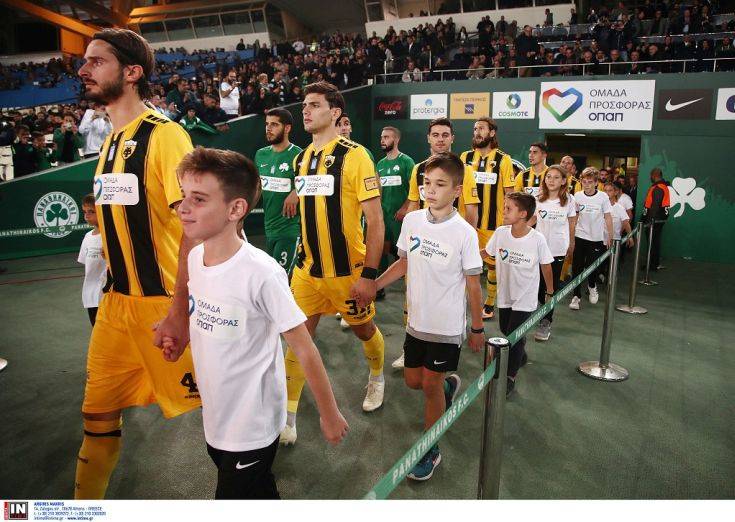 Μία ομάδα για τα παιδιά έγιναν Παναθηναϊκός και ΑΕΚ στο ντέρμπι της 9ης αγωνιστικής της Super League. Οι παίκτες και των δύο ομάδων αγωνίστηκαν φορώντας τη φανέλα της «Ομάδας Προσφοράς ΟΠΑΠ», έτρεξαν 222.872 μέτρα και ενίσχυσαν με 66.862 ευρώ την ανακαίνιση των παιδιατρικών νοσοκομείων «Η Αγία Σοφία» και «Παναγιώτης & Αγλαΐα Κυριακού». Η πρωτοβουλία για τη μετατροπή των μέτρων που διένυσαν οι ποδοσφαιριστές σε χρηματική ενίσχυση, ανήκει στον ΟΠΑΠ, ο οποίος διέθεσε 3 ευρώ για κάθε 10 μέτρα. Το τελικό ποσό των 66.862 ευρώ θα προστεθεί στη συνολική συνεισφορά της «Ομάδας Προσφοράς» για την υλοποίηση νέων έργων στα δύο μεγαλύτερα παιδιατρικά νοσοκομεία της χώρας. Για τη συμμετοχή τους στην «Ομάδα Προσφοράς», οι παίκτες του Παναθηναϊκού και της ΑΕΚ δεν άλλαξαν μόνο εμφάνιση, αλλά χρειάστηκε να φορέσουν και GPS αισθητήρες που μετρούσαν κάθε βήμα τους μέσα στο γήπεδο. Το επίσημο σύστημα μέτρησης των ομάδων κατέγραφε σε όλη τη διάρκεια του αγώνα την απόσταση που διένυαν οι ποδοσφαιριστές, ενώ τα matrix του ΟΑΚΑ ενημέρωναν τους θεατές για την πρόοδο που σημείωναν τόσο σε μέτρα όσο και σε συνεισφορά.