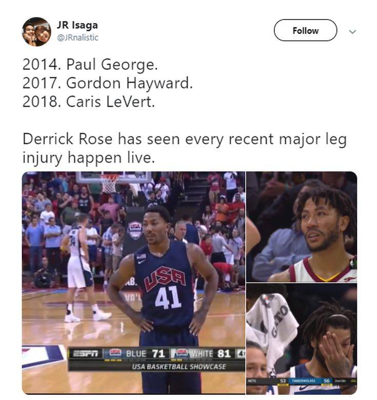Ήταν παρών στον φρικιαστικό τραυματισμό του Πολ Τζορτζ με την Team USA το 2014, είδε από κοντά την άτυχη στιγμή του Χέιγουορντ στο ματς των Σέλτικς με τους Καβς πέρυσι, ενώ πριν από λίγο το ίδιο έγινε και με τον Κάρις ΛεΒέρτ στο ματς των Νετς με τους Τίμπεργουλβς.