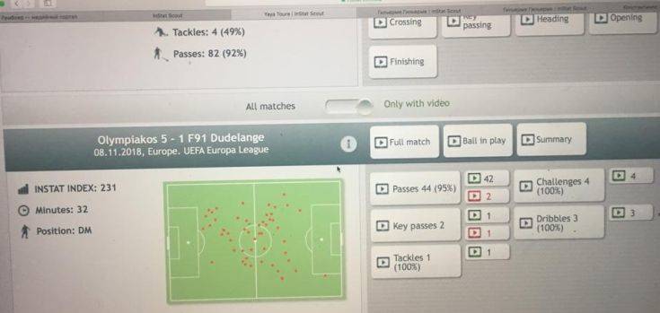 Κόντρα στη Ντουντελάνζ στις 8 Νοεμβρίου αγωνίστηκε για 32 λεπτά και τα στατιστικά του ήταν άριστα. Έδωσε 44 πάσες, εκ των οποίων το 95% ήταν σωστές και έκανε πολλά άλλα πράγματα στον αγωνιστικό χώρο. Δεν έχασε την μπάλα. Μπορείτε να δείτε και την φωτογραφία που σας έχω στείλει.