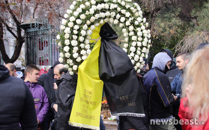 Στεφάνι κατέθεσε και αντιπροσωπεία της Original 21, των οργανωμένων οπαδών της ΑΕΚ. «Τιμή στους εξεγερμένους – Φωτιά στους προσκυνημένους», γράφει το στεφάνι.