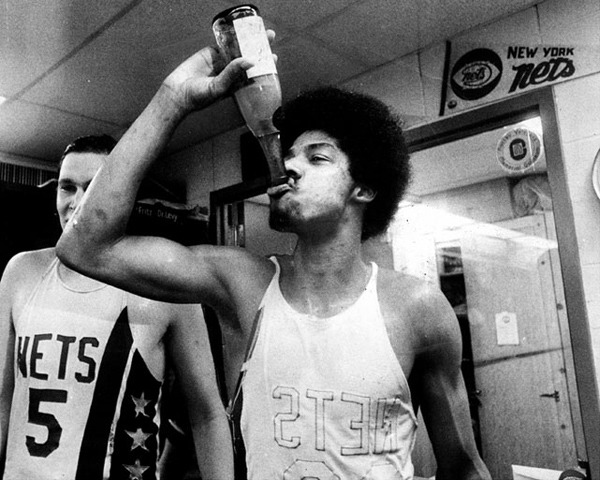 Εδώ ο Erving αποτελειώνει ένα μπουκάλι σαμπάνιας, αφού βέβαια οδήγησε πρώτα την ομάδα του στην κατάκτηση του πρωταθλήματος…
