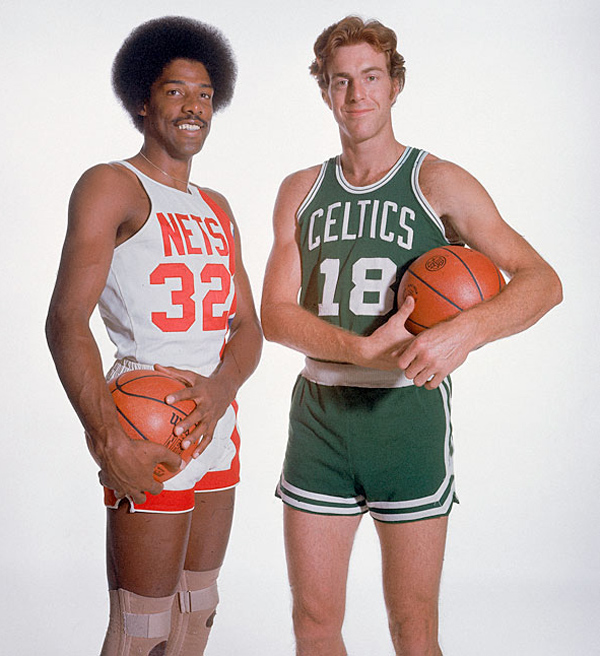 Ο Erving ποζάρει με τον Dave Cowens των Boston Celtics για εξώφυλλο περιοδικού.