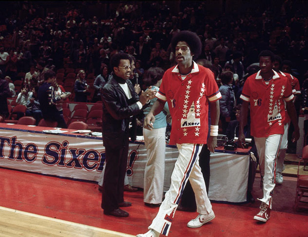 Ο Dr. J πετά στα ύψη για ένα ακόμη εντυπωσιακό κάρφωμα, στο δεύτερο παιχνίδι του τελικού του 1977. Ο Erving και οι Sixers έχασαν τελικά το πρωτάθλημα από τους Portland Blazers με 4-2.
