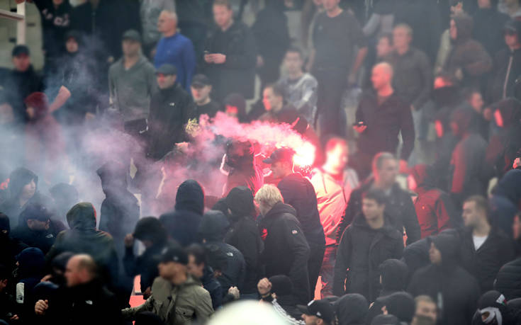 Οκτώ τραυματίες από πλευράς των οπαδών του Άγιαξ είχαν ως αποτέλεσμα τα επεισόδια που σημειώθηκαν στο περιθώριο του αποψινού αγώνα της ΑΕΚ με την ολλανδική ομάδα, όπως ενημέρωσαν οι άνθρωποι του Αίαντα κατά τη διάρκεια της συνέντευξης Τύπου.