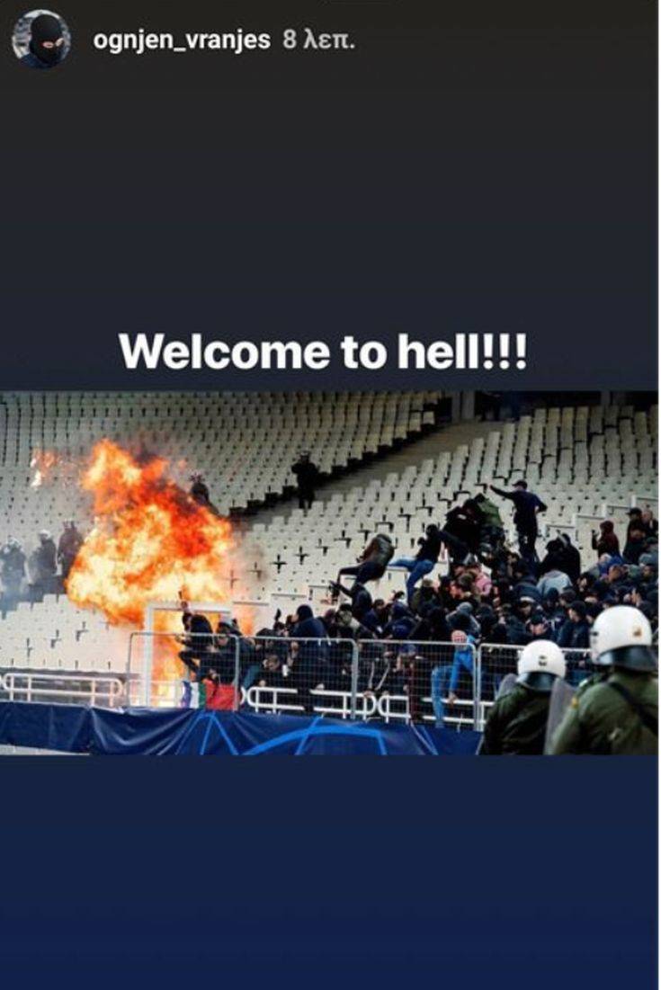 Ο Βράνιες ανάρτησε τη στιγμή της ρίψης της μολότοφ στους οπαδούς του Άγιαξ στο ΟΑΚΑ, γράφοντας: «Καλωσορίσατε στην κόλαση».