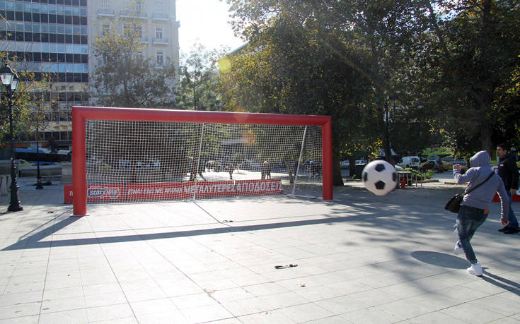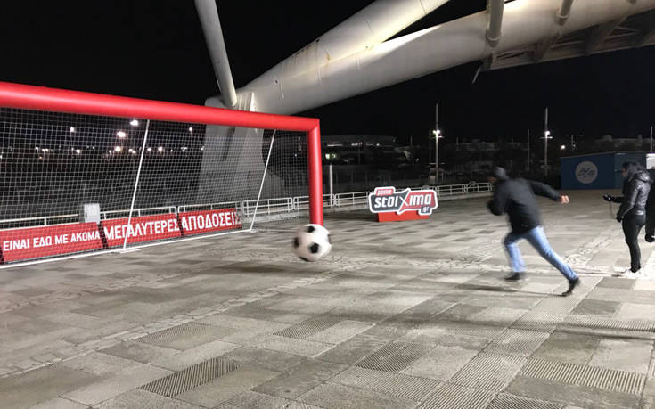 Δείτε φωτογραφίες με φιλάθλους και περαστικούς να δοκιμάζουν τις ικανότητές τους σε καλάθια και γκολ με τεράστιες μπάλες.