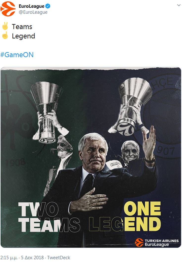 Με αφορμή τη μάχη του Παναθηναϊκού με τη Φενερμπαχτσέ στο ΟΑΚΑ (7/11, 21:30), η Euroleague έφτιαξε μια φωτογραφία με τον Ζέλικο Ομπράντοβιτς.