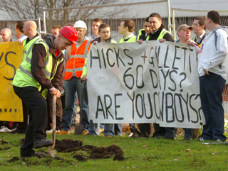 Έχουν περάσει 440 ημέρες από την στιγμή που οι Χικς και Ζιλέτ ανέλαβαν το σύλλογο και εξήγγειλαν το περίφημο …δίμηνο. Η υπομονή του κόσμου εξαντλείται και οι οπαδοί παίρνουν την κατάσταση στα χέρια τους, τα φτυάρια επίσης, φορούν μπλουζάκια υβριστικά προς τη διοίκηση και αρχίζουν να σκάβουν -συμβολικά- για το νέο γήπεδο.