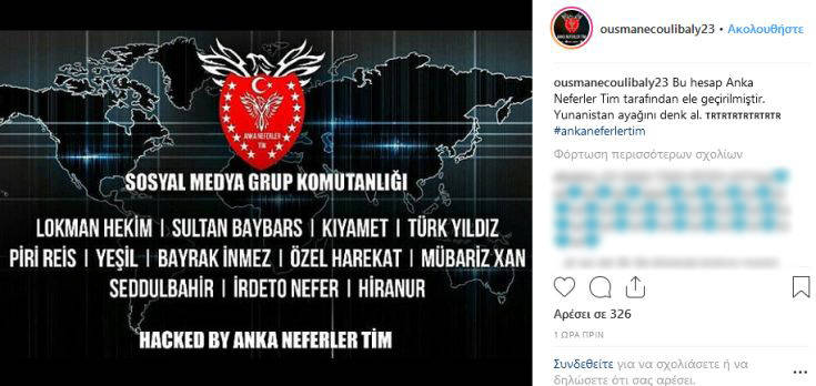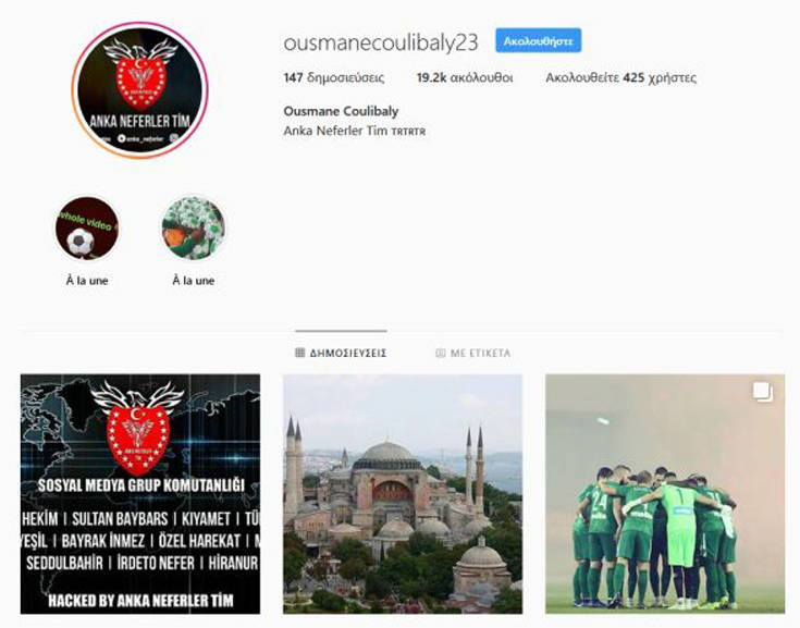 Τούρκοι χάκερς έβαλαν στο στόχαστρο και ποδοσφαιριστές με τελευταίο θύμα τους τον αμυντικό του Παναθηναϊκού, Ουσμάν Κουλιμπαλί, στον λογαριασμό του οποίου έκαναν δύο προκλητικές αναρτήσεις.