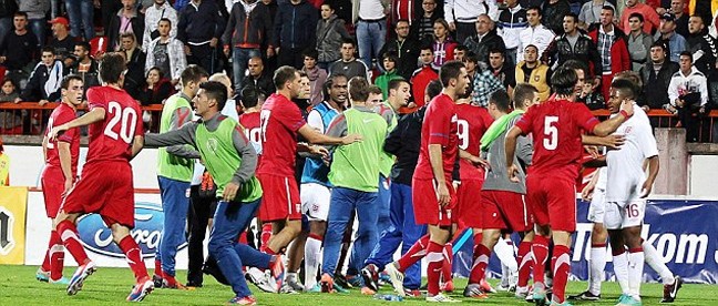 Τα όσα συνέβησαν στον αγώνα της Σερβίας με την Αγγλία για τα προκριματικά του Εuro U21 δε θυμίζουν σε τίποτα ποδοσφαιρική αναμέτρηση: ξύλο, αποδοκιμασίες και ρατσιστικές επιθέσεις.