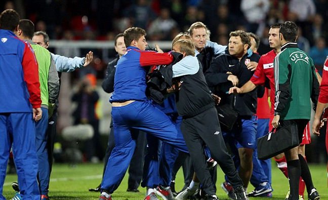 Οι παίκτες και τα στελέχη των Ελπίδων της Αγγλίας δέχτηκαν επίθεση από Σέρβους οπαδούς αλλά και ρατσιστικές ύβρεις μετά τη νίκη τους με 1-0, που σφράγισε την πρόκριση των «λιονταριών» στο Euro 2013.