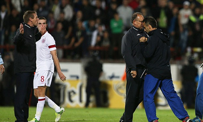 Τα επεισόδια κλιμακώθηκαν όταν Σέρβοι παίκτες και οπαδοί επιτέθηκαν στους Αγγλους και έκαναν απομιμήσεις μαϊμούδων, ενώ ο Ντάνι Ρόουζ είδε κόκκινη κάρτα γιατί κλώτσησε τη μπάλα στις εξέδρες μετά την λήξη του αγώνα