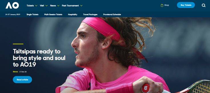 Ο Στέφανος Τσιτσιπάς είναι ένα από τα πιο λαμπρά αστέρια του παγκοσμίου τένις και ένας αθλητής που έχει καταφέρει να στρέψει πάνω του τα φώτα της δημοσιότητας σε διεθνές επίπεδο. Μάλιστα, ο 20χρονος Έλληνας αποτελεί το βασικό θέμα στην επίσημα ιστοσελίδα του Αυστραλιανού Όπεν, το οποίο θα διεξαχθεί μεταξύ 14 και 27 Ιανουαρίου του 2019.