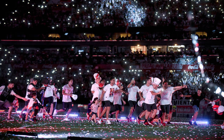 Το σκηνικό που στήθηκε στο «Μουνουμεντάλ» ήταν έτοιμο να φιλοξενήσει ένα μεγάλο πάρτι και οι παρευρισκόμενοι φρόντισαν να μπουν για τα καλά στο πνεύμα της γιορτής. Άπαντες ξεφάντωσαν για την επιτυχία της Ρίβερ, ενώ το μόνο που διέκοψε για λίγο τη χαρά, ήταν το ενός λεπτού σιγή για… τον θάνατο της Μπόκα.