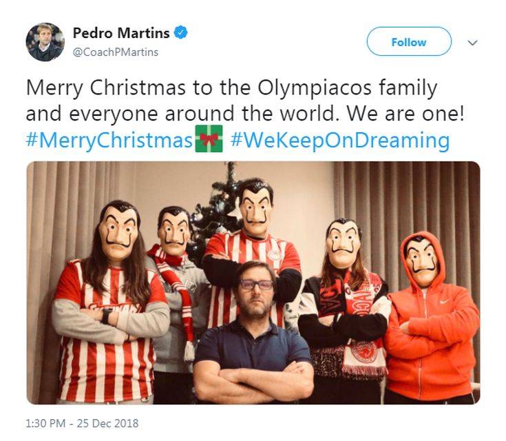 Τις δικές του ευχές για τα Χριστούγεννα έδωσε ο προπονητής του Ολυμπιακού Πέδρο Μαρτίνς με έναν πρωτότυπο τρόπο.