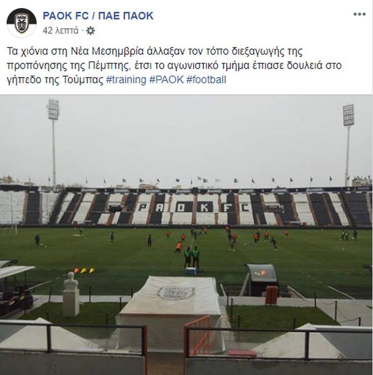 Έτσι, οι άνθρωποι του «δικεφάλου» αποφάσισαν να αλλάξουν σκηνικό, να φύγουν από το χιονισμένο προπονητικό τους κέντρο και να μεταβούν για το πρόγραμμά τους στο γήπεδο της Τούμπας.