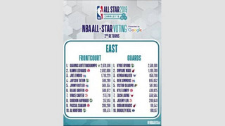 Ο Γιάννης απέχει μόνο 108.996 ψήφους από τον ΛεΜπρόν Τζέιμς, ο οποίος έχει συγκεντρώσει μέχρι στιγμής τους περισσότερες ψήφους (2.779.812 για την ακρίβεια) από οποιονδήποτε άλλον παίκτη του ΝΒΑ! Στην 3η θέση της Ανατολής είναι ο Καουάι Λέοναρντ (2.092.806 ψήφοι), στην 4η θέση ο Ντουέιν Ουέιντ (1.999.789 ψήφοι) και την 5άδα κλείνει ο Τζοέλ Εμπίντ (1.710.806 ψήφοι).