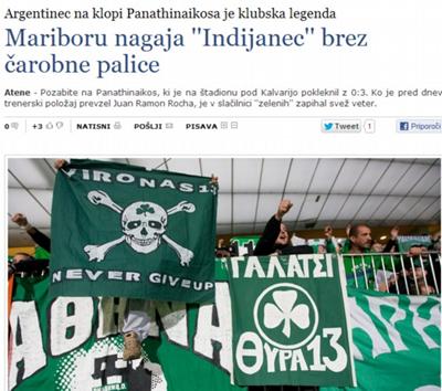 Όπως καταλαβαίνετε το ενδιαφέρον τον Σλοβένων για την αλλαγή προπονητή στο «τριφύλλι», έχει να κάνει με την αναμέτρηση της Πέμπτης ανάμεσα στους «πράσινους» και τη Μάριμπορ, στο Ολυμπιακό Στάδιο, για την 5η αγωνιστική του Europa League. Ο τίτλος του κειμένου είναι ο εξής: «Ο Ινδιάνος δεν έχει μαγικό ραβδί, ενόψει Μάριμπορ» και ο υπέρτιτλος γράφει: «Ένας αργεντίνικος μύθος στον πάγκο του Παναθηναϊκού».