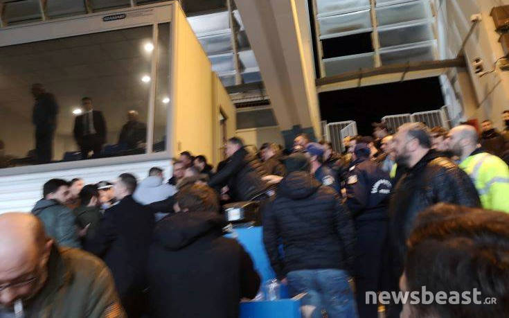 Αστυνομικοί προσπαθούν να επαναφέρουν την ηρεμία στο σημείο και να χωρίσουν τα… αντίπαλα στρατόπεδα.