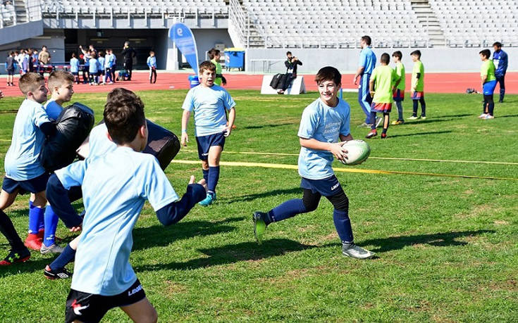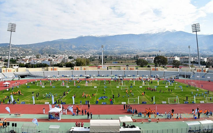 Στιγμιότυπο από το φεστιβάλ αθλητικών ακαδημιών ΟΠΑΠ στην Πάτρα.