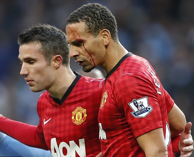Ο αμυντικός των «κόκκινων διαβόλων» Ριο Φέρντιναντ, χτυπήθηκε με κέρμα στο μάτι, κάτι που του προκάλεσε αιμορραγία.