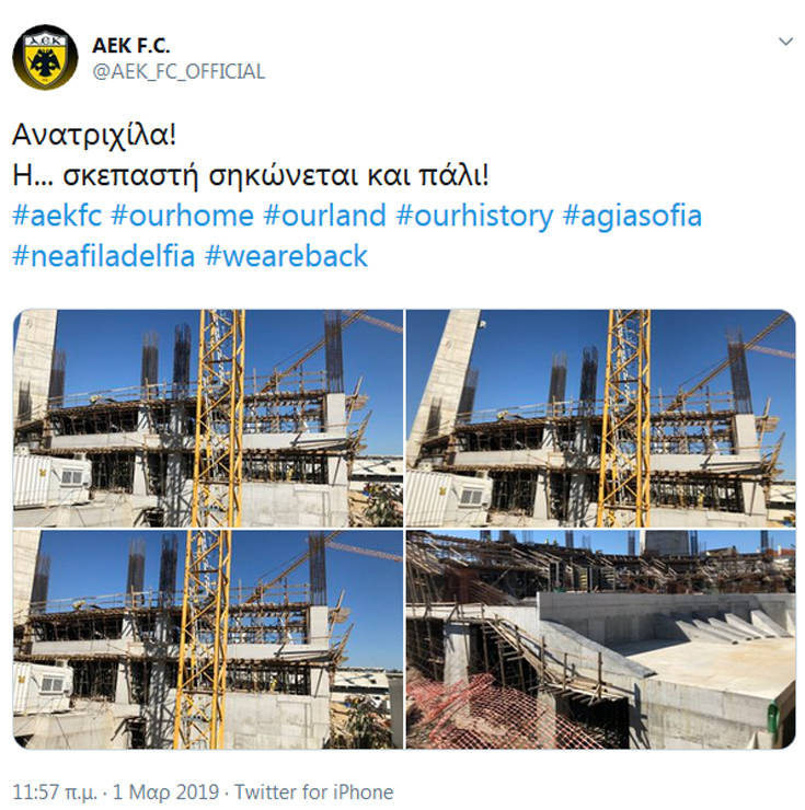 Η «κιτρινόμαυρη» ΠΑΕ δημοσίευσε στον επίσημο λογαριασμό στο Facebook φωτογραφίες από το συγκεκριμένο σημείο των εργασιών, τις οποίες συνόδευσε με τη λεζάντα «Ανατριχίλα! Η… σκεπαστή σηκώνεται και πάλι!».