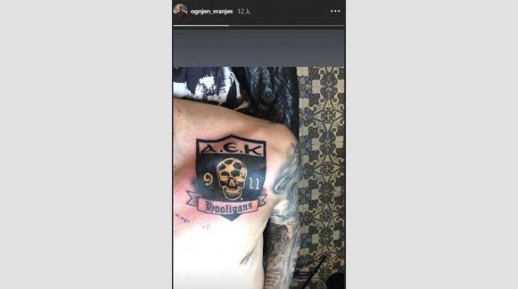 Ο Ογκνιέν Βράνιες αισθάνεται… οργανωμένος οπαδός της ΑΕΚ και με το νέο του τατουάζ, που περιλαμβάνει μία κιτρινόμαυρη νεκροκεφαλή και τα γράμματα 9 – 11, το αποδεικνύει ξανά!
