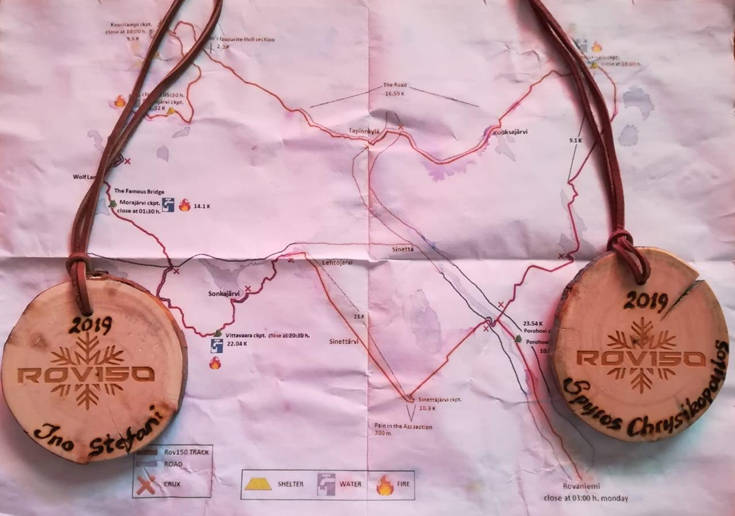 Είχαν περάσει σχεδόν 36 δύσκολες ώρες μέχρι τη στιγμή που η Ινώ και ο Σπύρος είδαν για πρώτη φορά εμπρός τους τα φώτα της πόλης, εκεί όπου ήταν και ο τερματισμός του φετινού αγώνα. Πιο πριν όμως, οι δύο Έλληνες έπρεπε να διαβούν και από τα 8 σημεία ελέγχου του «Rovaniemi 150», στα οποία τόσο η Ινώ όσο και ο Σπύρος, έπρεπε να υπογράφουν προκειμένου να επιβεβαιώνουν ότι πέρασαν από τα εκάστοτε check-points. Από αυτά, μόλις σε 6 σημεία υπήρχε η δυνατότητα για ανεφοδιασμό νερού.
