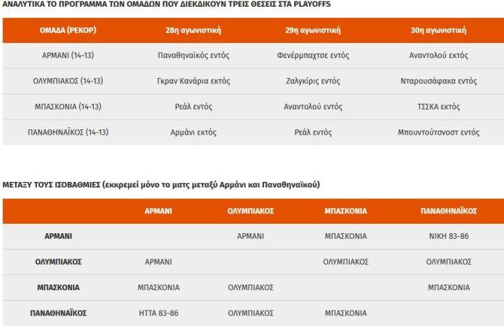 Οι τρεις θέσεις που μένουν θα κριθούν ανάμεσα σε Αρμάνι Μιλάνο, Ολυμπιακό, Μπασκόνια, Παναθηναϊκό με τις ομάδες να ισοβαθμούν αυτή τη στιγμή με ρεκόρ 14-13.