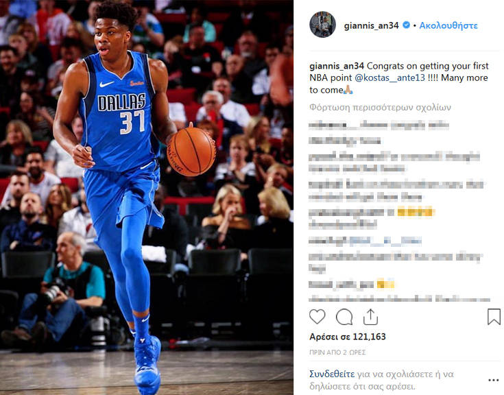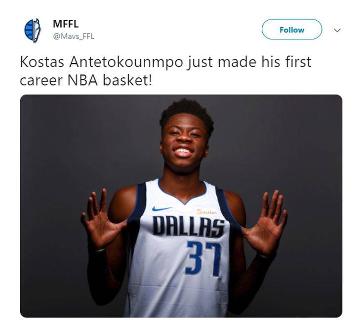 «Συγχαρητήρια για τον πρώτο σου πόντο στο ΝΒΑ. Πολλοί να ακολουθήσουν», ήταν λεζάντα στη φωτογραφία που ανέβασε.