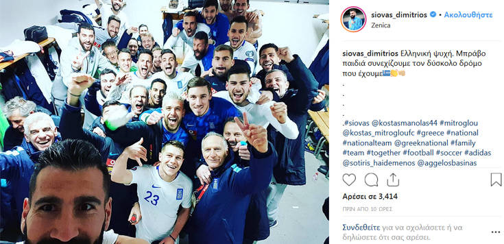 Χαρακτηριστική είναι η φωτογραφία που «ανέβασε» στον λογαριασμό του στο Instagram o Δημήτρης Σιόβας, με όλους τους διεθνείς αγκαλιά, την οποία συνόδευσε με την εξής λεζάντα: «Ελληνική ψυχή. Μπράβο παιδιά συνεχίζουμε τον δύσκολο δρόμο που έχουμε».