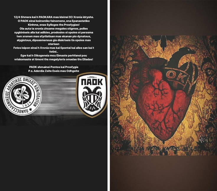 Ο γιος του ιδιοκτήτη της «ασπρόμαυρης» ΠΑΕ και μέλος του Δ.Σ. της εταιρείας ανέβασε πολλά stories στο Instagram που αφορούσαν τον ΠΑΟΚ, με αυτά που ξεχωρίζουν να είναι το μήνυμά του για τα 93α γενέθλια και μια καρδιά που «αγκαλιάζει» το σήμα του συλλόγου.