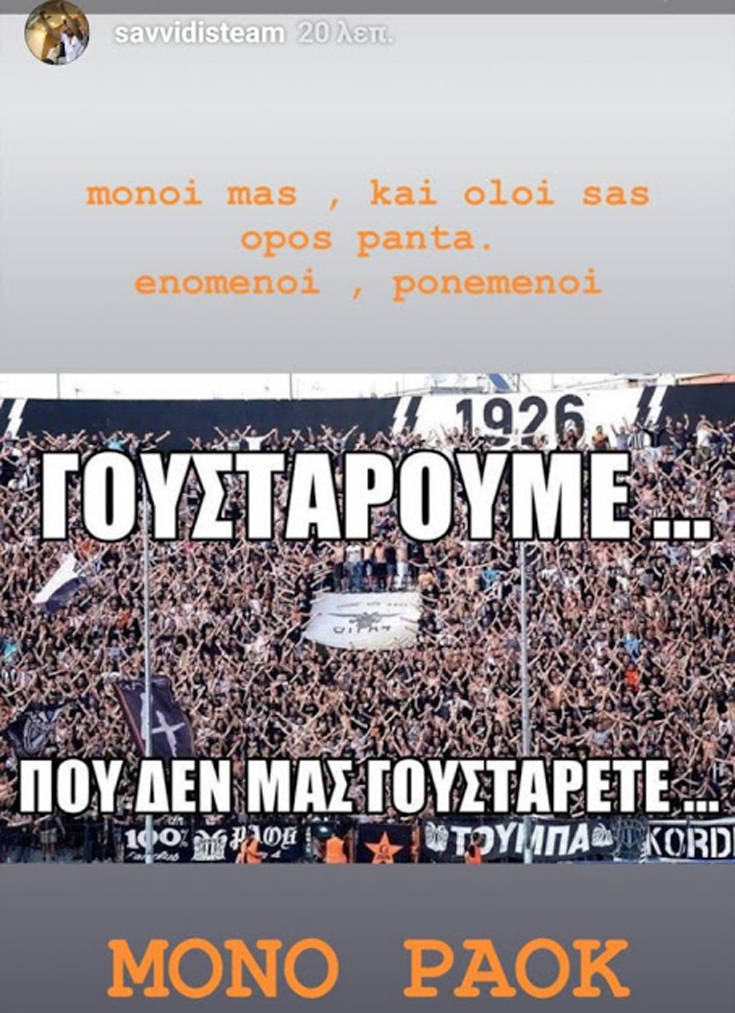 Με ένα ακόμη ποστάρισμα, σημείωσε: «Μόνοι μας και όλοι σας. Όπως πάντα, ενωμένοι και πονεμένοι. Γουστάρουμε που δε μας γουστάρετε. Μόνο ΠΑΟΚ».