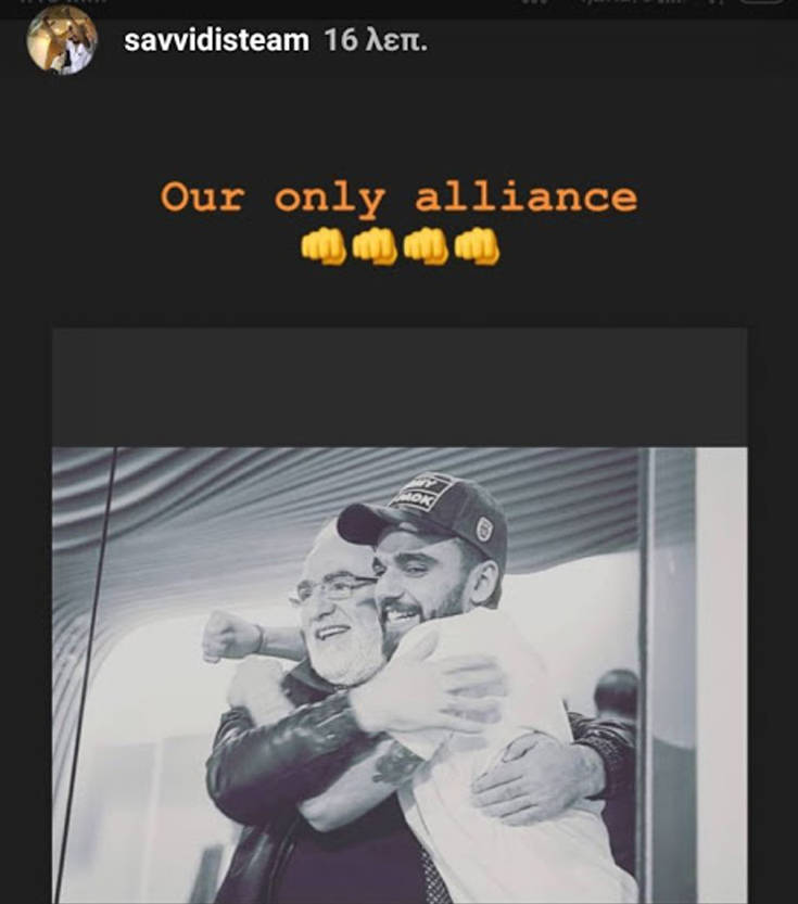 Επίσης, ο Γιώργος Σαββίδης ανάρτησε μια φωτογραφία στην οποία είναι αγκαλιασμένος με τον πατέρα του και και την οποία συνόδευσε με την εξής λεζάντα: «Η μόνη μας συμμαχία».