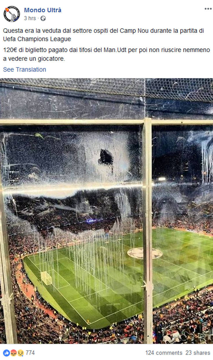 Οι περισσότεροι δεν έχουν την ευκαιρία να δουν αυτά τα ποδοσφαιρικά ραντεβού δια ζώσης, ωστόσο υπάρχουν κάποιοι που θυσιάζουν χρόνο, χρήμα και κόπο για να βρεθούν δίπλα στην αγαπημένη τους ομάδα. Όπως έκαναν και κάποιοι οπαδοί της Μάντσεστερ Γιουνάιτεντ στον εκτός έδρας προημιτελικό με την Μπαρτσελόνα. Παρά το 0-1 του πρώτου ματς βρέθηκαν στο «Καμ Νου» για να υποστηρίξουν τους παίκτες του Όλε Γκούναρ Σόλσκιερ. Ωστόσο, το πώς θα παρακολουθούσαν το παιχνίδι, ίσως να μην το φαντάζονταν…