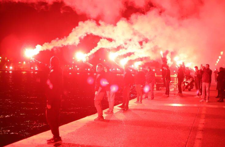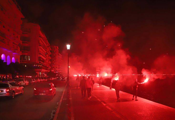 Οπαδοί του ΠΑΟΚ άναψαν καπνογόνα σε όλο το παραλιακό μέτωπο της Θεσσαλονίκης και έριξαν πυροτεχνήματα, ξεκινώντας τη φιέστα.