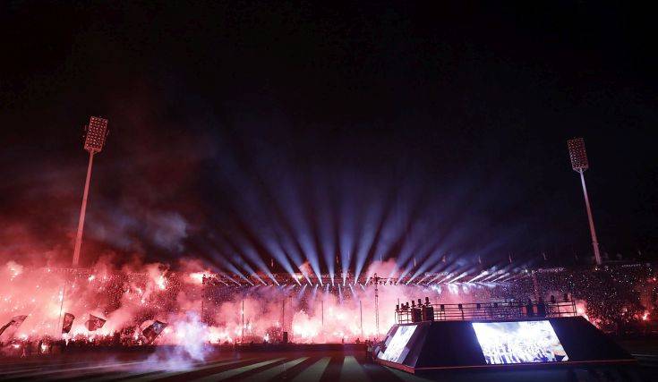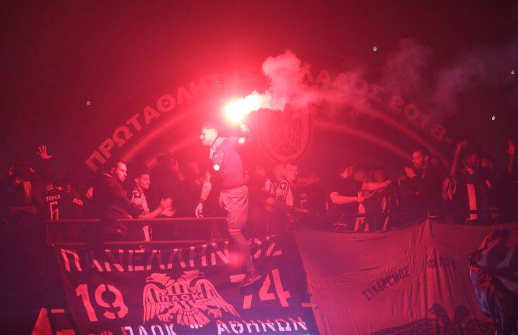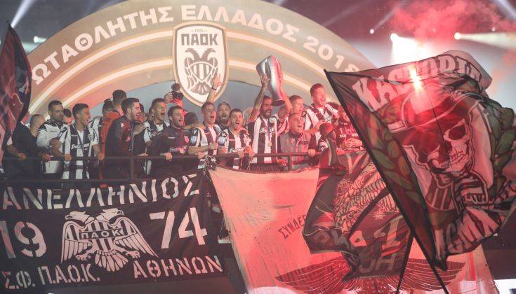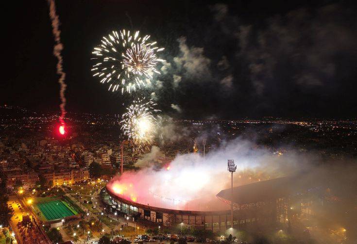 Ο ΠΑΟΚ πανηγυρίζει την κατάκτηση του τρίτου πρωταθλήματος στην ιστορία του και η Τούμπα κάηκε από τα χιλιάδες βεγγαλικά που έκαναν τη νύχτα μέρα.