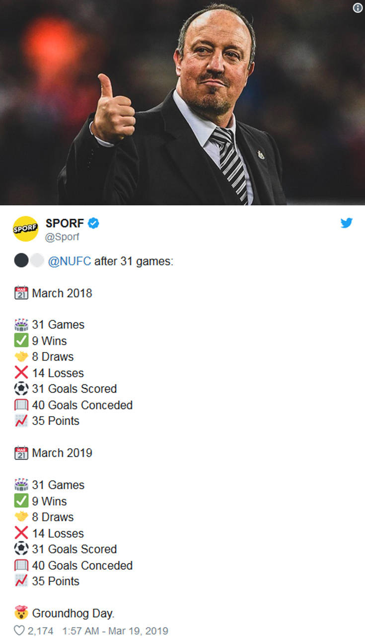 Δείτε τους αριθμούς της Νιούκαστλ έπειτα από 31 ματς και έπειτα από 35: