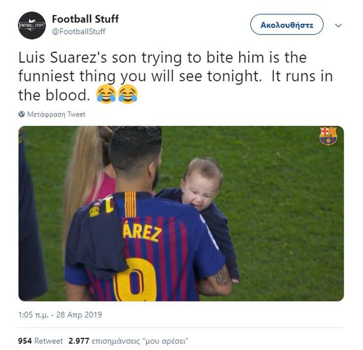 Ο μικρούλης δάγκωσε τον μπαμπά του στον ώμο και εννοείται ότι αυτό δεν θα περνούσε έτσι αδιάφορα από το διαδίκτυο, δεδομένων των όσων έχει κάνει στο παρελθόν ο διεθνής επιθετικός με τους αντιπάλους του!