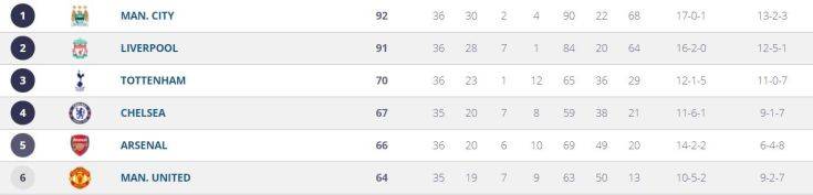 Μάντσεστερ Σίτι (92 β. 36 ματς)