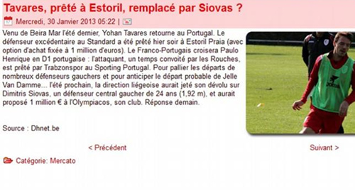 Πρόταση της Σταντάρ Λιέγης για την απόκτηση του Δημήτρη Σιόβα αποκαλύπτει ο βελγικός Τύπος.