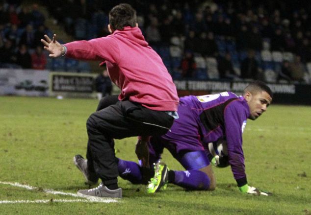 Η ομάδα της Football League Two, αντιμετώπιζε την Gillingham και παιζόντουσαν τα τελευταία λεπτά των καθυστερήσεων. Ο 19χρονος τερματοφύλακας έσκυβε για να τοποθετήσει τη μπάλα και να συνεχίσει το ματς, όταν ένας οπαδός μπήκε στο γήπεδο και όρμησε προς τον παίκτη.