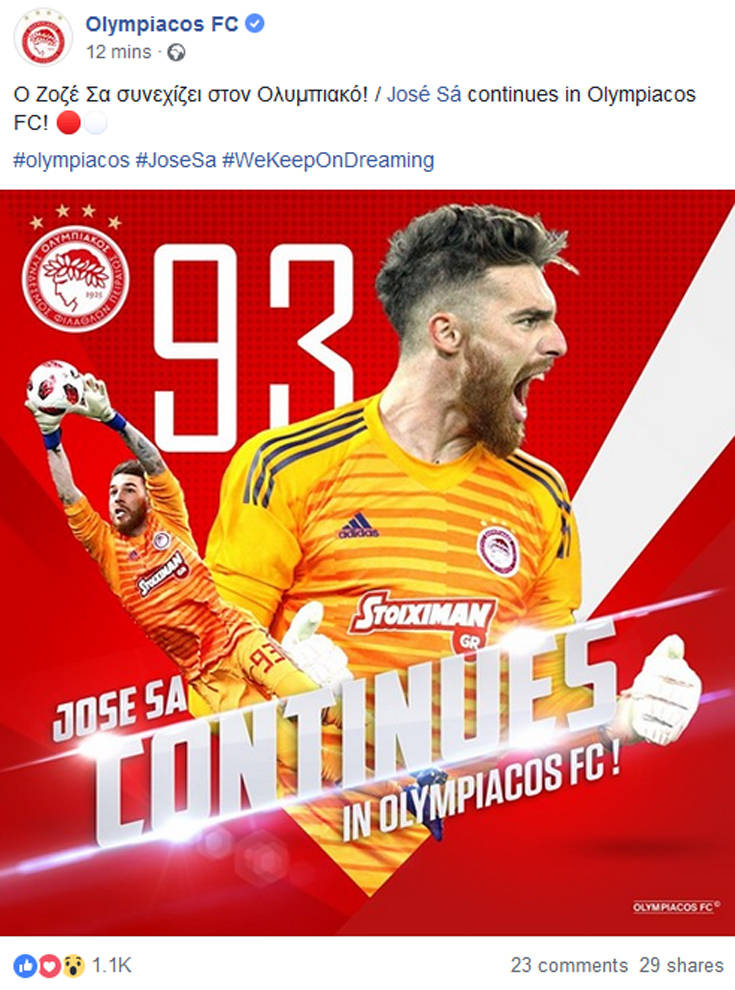 Μπορεί η υπόθεση να είχε εξελιχθεί σε σίριαλ, αλλά όλα τελείωσαν θετικά για Ολυμπιακό και Ζοσέ Σα, που έβαλαν υπογραφές για να συνεχίσουν τη συνεργασία τους μέχρι το καλοκαίρι του 2023.
