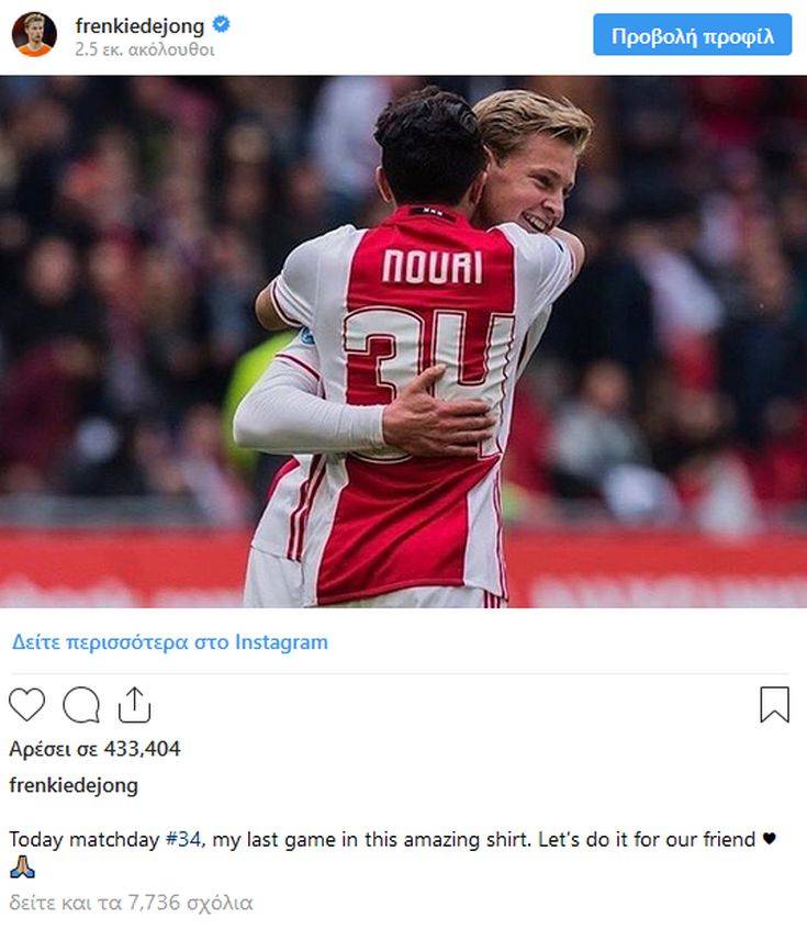 Ο Φρένκι Ντε Γιόνγκ, λίγες ώρες πριν από το τελευταίο του παιχνίδι με τη φανέλα του Άγιαξ προτού μετακομίσει στη Βαρκελώνη, δεν ξέχασε τον μεγάλο απόντα αυτής της τρομερής φουρνιάς της ομάδας. Τον Νούρι…