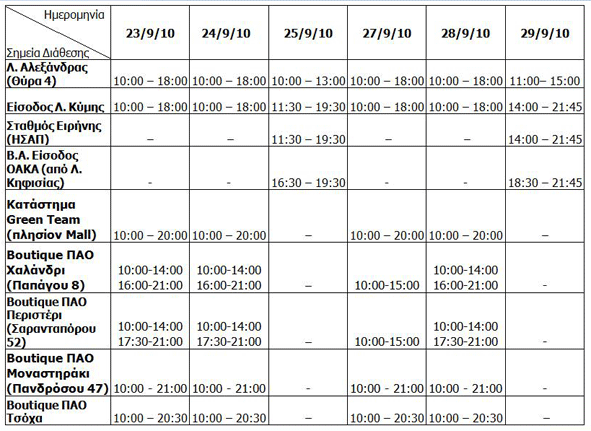 Στην διάθεση των φιλάθλων του Παναθηναϊκού θα τεθούν από την Πέμπτη, 23 Σεπτεμβρίου, τα εισιτήρια του αγώνα της 4ης αγωνιστικής του Πρωταθλήματος ΟΠΑΠ, Παναθηναϊκός – Πανιώνιος, καθώς και του αγώνα UEFA CHAMPIONS LEAGUE, Παναθηναϊκός – FC Kobenhavn, που θα διεξαχθούν στις 25/9/2010 και 29/9/2010, αντίστοιχα, στο Ολυμπιακό Στάδιο.