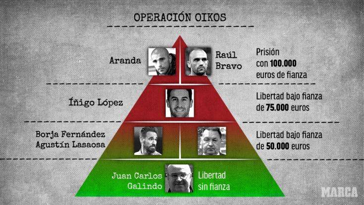 Δεν αποτελεί μέρος της καθημερινότητας ενός ποδοσφαιριστή να περνά 72 ώρες χωρίς επικοινωνία, να βλέπει πως αφαιρούν τα κορδόνια από τα παπούτσια βάσει προτοκόλου αποτροπής αυτοτραυματισμών στα κελιά και να πρέπει να εμφανιστεί με χειροπέδες στα πρωτοσέλιδα των ίδιων εφημερίδων που πριν δικαστεί, αποθέωναν το αθλητικό του ταλέντο. Ραούλ Μπράβο και Κάρλος Αράντα αρνήθηκαν να καταθέσουν για τα στημένα και το δικαστήριο της Ουέσκα αποφάσισε την προφυλάκισή τους!