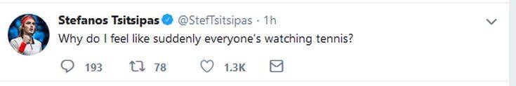 «Γιατί νιώθω πως ξαφνικά όλοι παρακολουθούν τένις», έγραψε στο twitter ο Στέφανος Τσιτσιπάς.