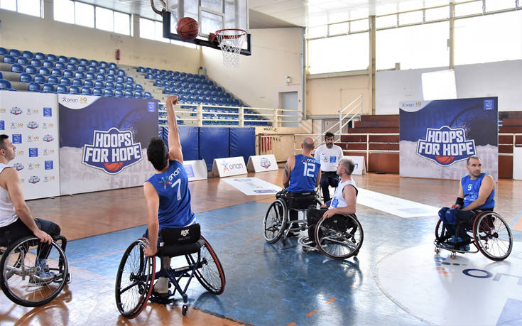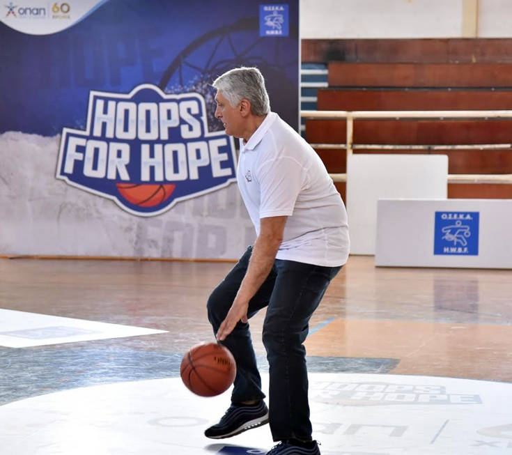 Καλάθια για καλό σκοπό σκοράρουν πέντε Έλληνες «θρύλοι» του μπάσκετ, στο πλαίσιο της ενέργειας «Ηοops for Hope» που υλοποιεί ο ΟΠΑΠ, Μέγας Χορηγός της ΟΣΕΚΑ, σε συνεργασία με την ομοσπονδία.