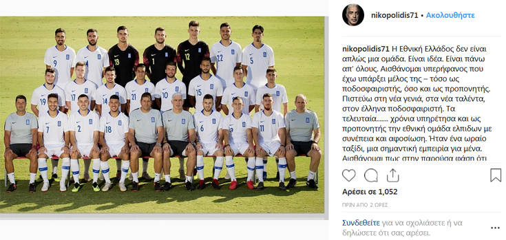«Η Εθνική Ελλάδος δεν είναι απλώς μια ομάδα. Είναι ιδέα. Είναι πάνω απ’ όλους. Αισθάνομαι υπερήφανος που έχω υπάρξει μέλος της -τόσο ως ποδοσφαιριστής, όσο και ως προπονητής.